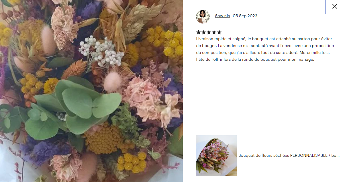 décoration florale de mariage, ainsi qu'une boutique en ligne de fleurs séchées.