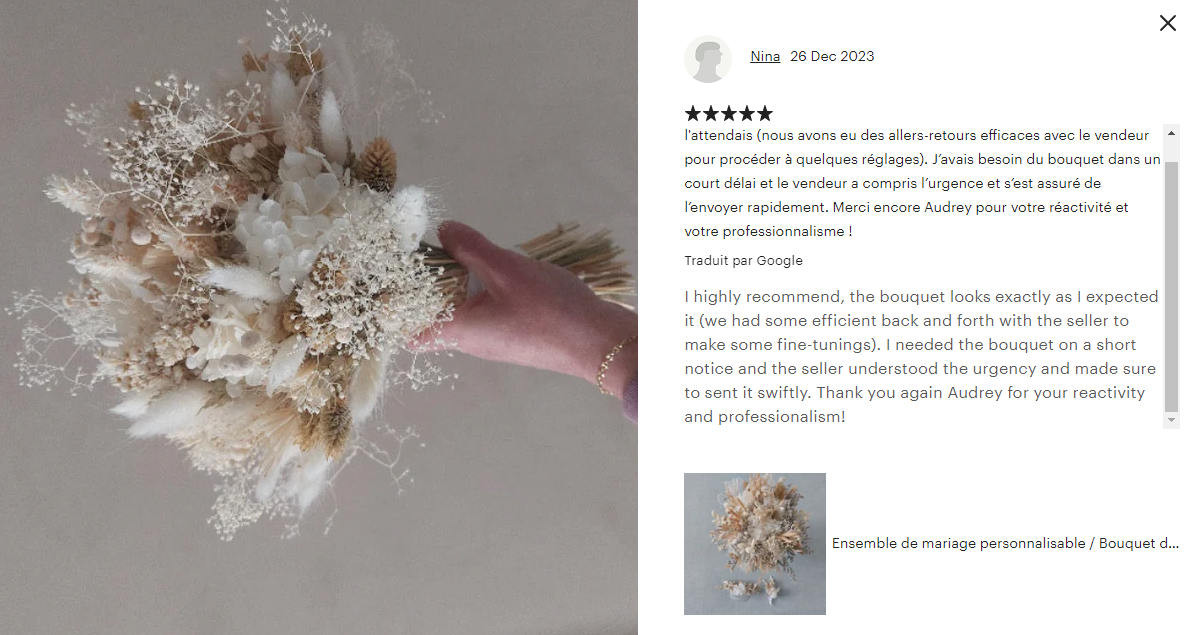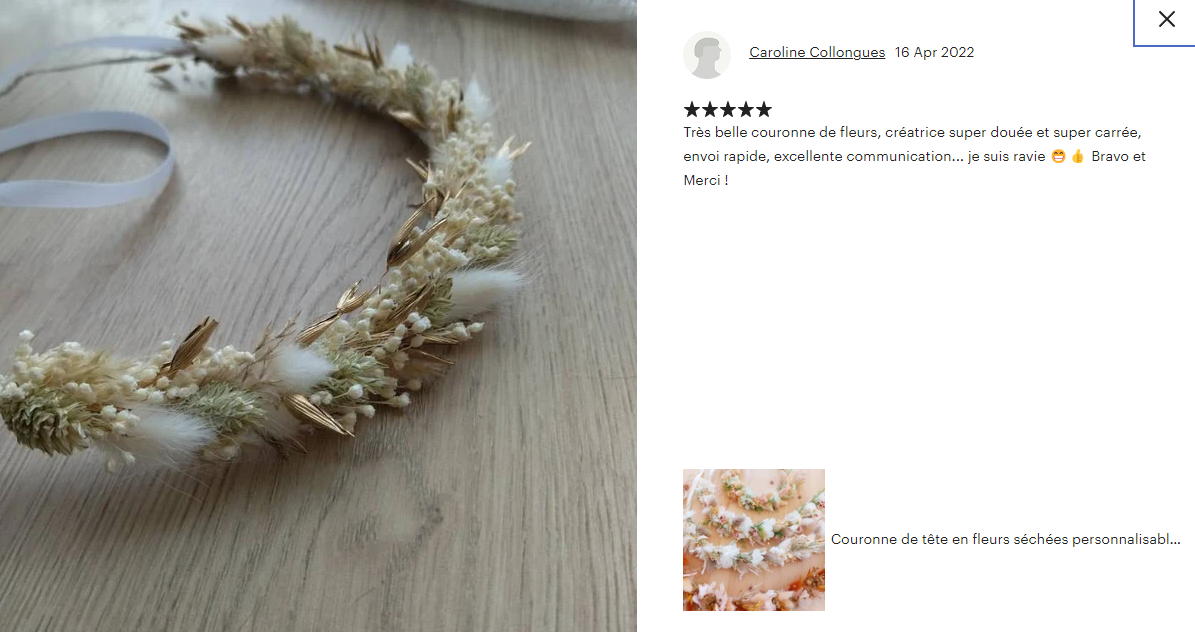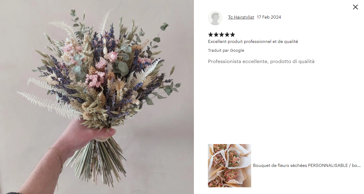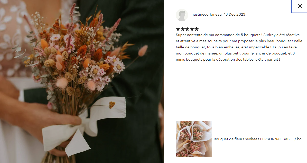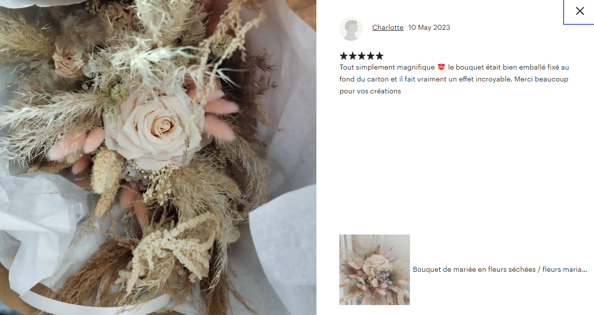 décoration florale de mariage, ainsi qu'une boutique en ligne de fleurs séchées.