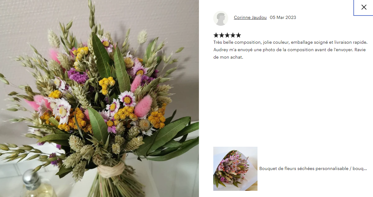 Découvrez ma boutique de fleurs séchées en ligne, avec toutes sortes de créations florales pour votre mariage ou pour offrir ou pour se faire plaisir tout simplement.