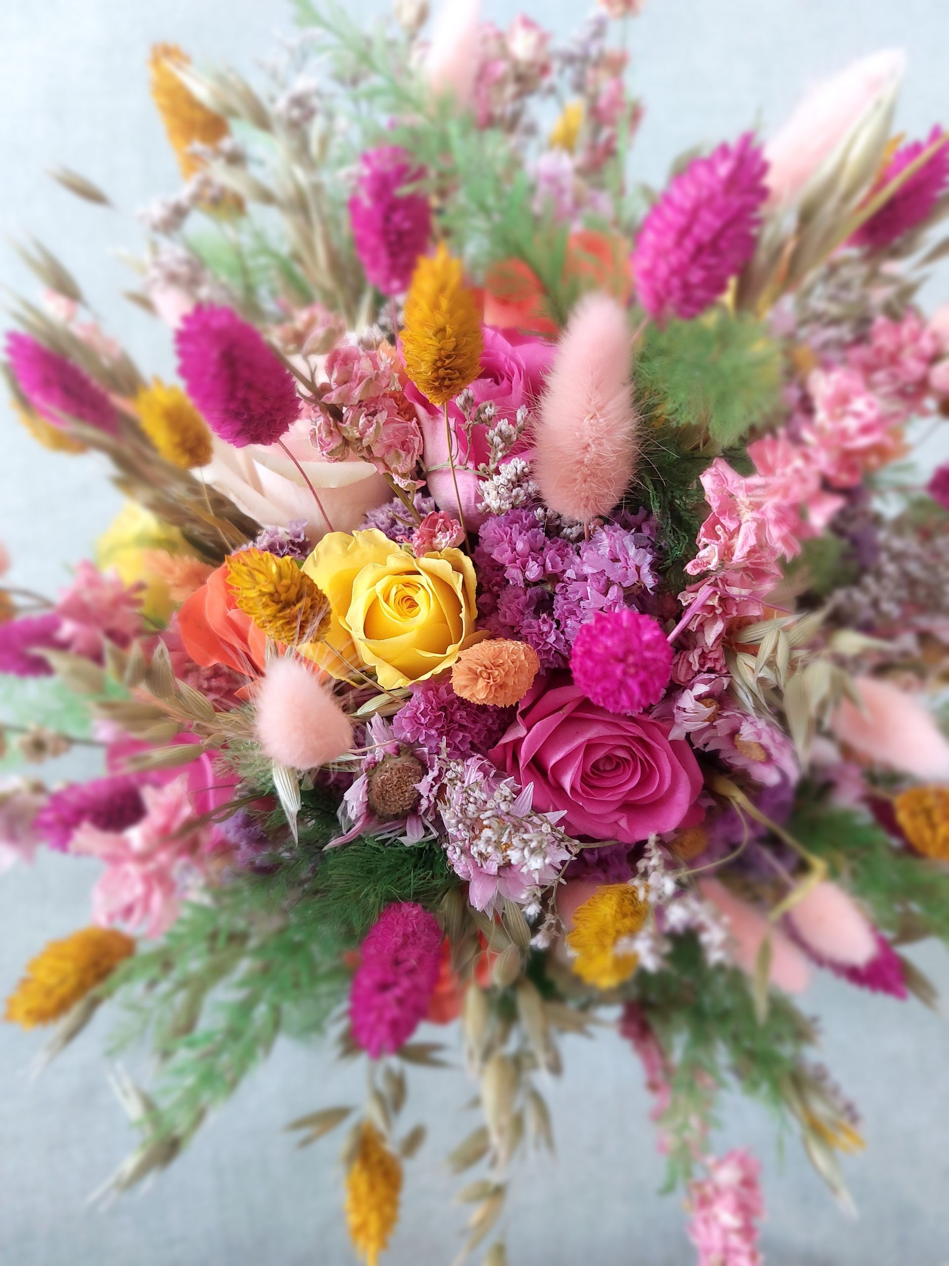 Créations sur-mesure de bouquets de fleurs séchées, décoration personnalisable et centre de table mariage